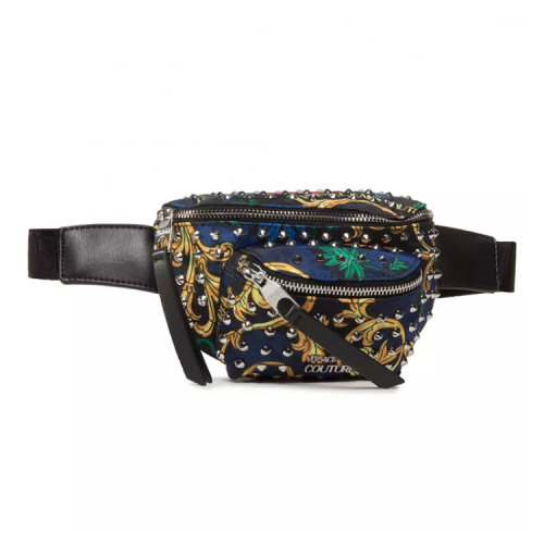 VERSACE JEANS/范思哲牛仔 男包女包黑色尼龙时尚百搭巴洛克花纹铆钉装饰胸包腰包 EE1VZBBX1-E71739-EMAF