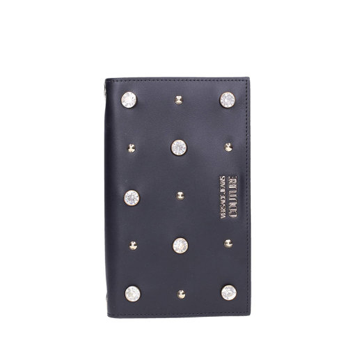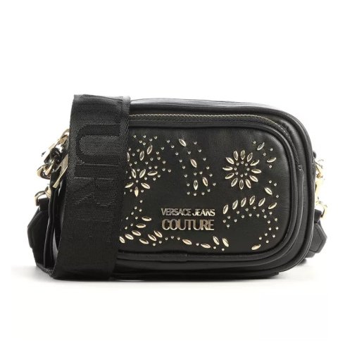 VERSACE JEANS/范思哲牛仔 女包女士黑色皮革时尚百搭铆钉装饰斜挎包单肩包 EE1VZABB5-E71575-E899