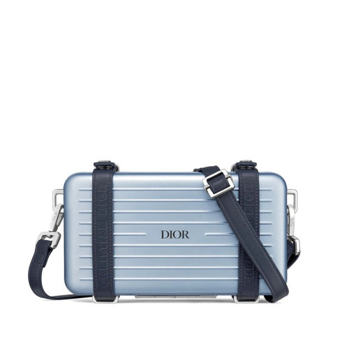 DIOR/迪奥 RIMOWA限量合作款 男士天蓝色铝拼接小牛皮斜挎单肩箱子包 2DRCA295YWT_H03E