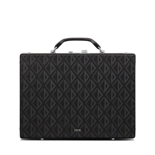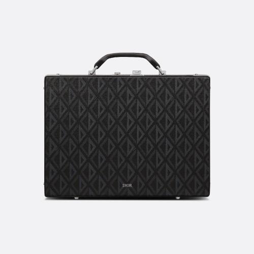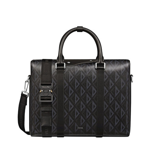 DIOR/迪奥 22春夏新款LOCK系列 男士黑色CD Diamond图案帆布光滑牛皮革手提公文包1LXBR157CDP_H43E
