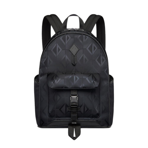 DIOR/迪奥 22新款 男士黑色尼龙橡胶贴片双向拉链开合调节肩带双肩包1ESBA012NCD_H03E