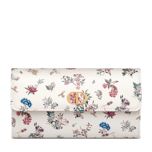 DIOR/迪奥 22新款CARO系列 女士奶白色小牛皮冬日花园主题印花翻盖开合长款钱包S5039USJS_M941