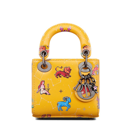 DIOR/迪奥 22新款LADY DIOR系列 女士超迷你黄色多色Zodiac Pixel印花牛皮革“D.I.O.R.”吊饰单肩斜挎手提包S0856BNER_M930