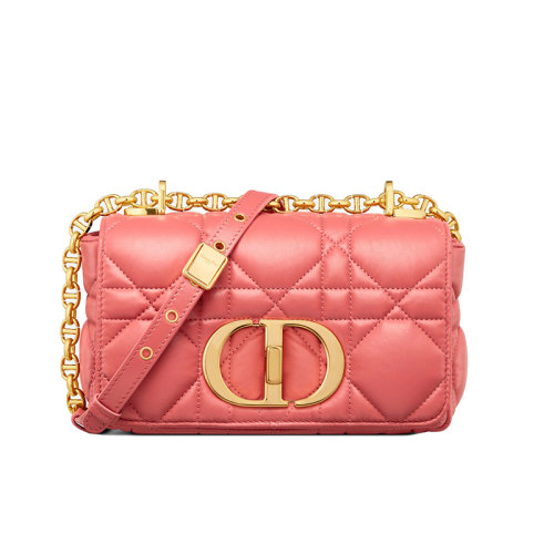 DIOR/迪奥 22新款DIOR CARO系列 女士粉珊瑚色渐变牛皮革绗缝超大藤格纹配链条手袋单肩斜挎手提包M9241UNGK_M76P