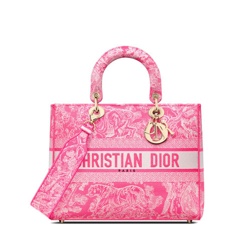 DIOR/迪奥 22新款LADY D-Lite系列 女士大号荧光粉织物茹伊印花刺绣手袋M0566OROC_M956