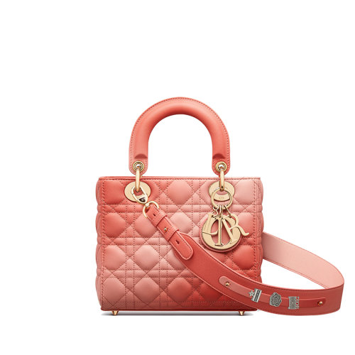 DIOR/迪奥 22新款 LADY DIOR系列MY ABCDIOR 女士珊瑚粉渐变色小羊皮藤格纹配金扣单肩斜挎手提戴妃包(勋章款)M0538OZAQ_M68E