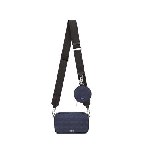 DIOR/迪奥 22春夏新款 儿童款小号海军蓝色帆布藤格纹附可拆卸小袋多功能斜跨单肩包M9908PTMC_M47Q