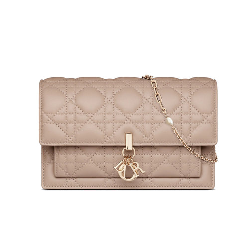 DIOR/迪奥 22新款LADY DIOR系列 女士榛子色藤格纹羊皮革翻盖开合单肩斜挎链条手机袋S0937ONMJ_M45U
