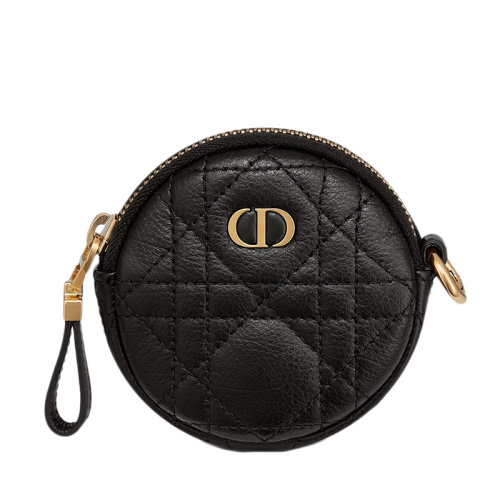 DIOR/迪奥 CARO系列 女士黑色菱纹柔软小牛皮可拆卸圆型拉链零钱包S5035UWHC_M900