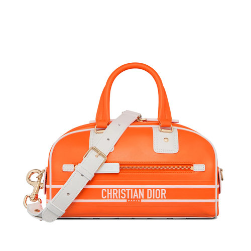 DIOR/迪奥 22新款DIOR VIBE BOWLING系列 女士小号荧光橙牛皮革配金扣单肩斜挎手提拉链包M6209OVWX_M057