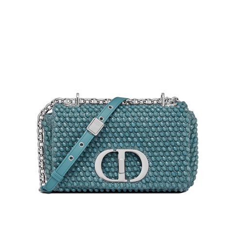 DIOR/迪奥 22新款DIOR CARO系列 女士小号天蓝色小牛皮珍珠刺绣饰CD银扣配链条手袋单肩斜挎手提包M9241PRQY_M76E