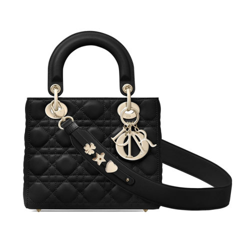DIOR/迪奥 经典款Lady Dior勋章款 女士小号黑色小羊皮单肩手提戴妃包 M0538OCAL_M900