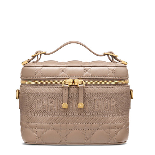 DIOR/迪奥 20 DIORTRAVEL系列 女士灰褐色藤格纹小羊皮可拆卸肩带单肩斜挎洗漱包S5488UNTR_M45M