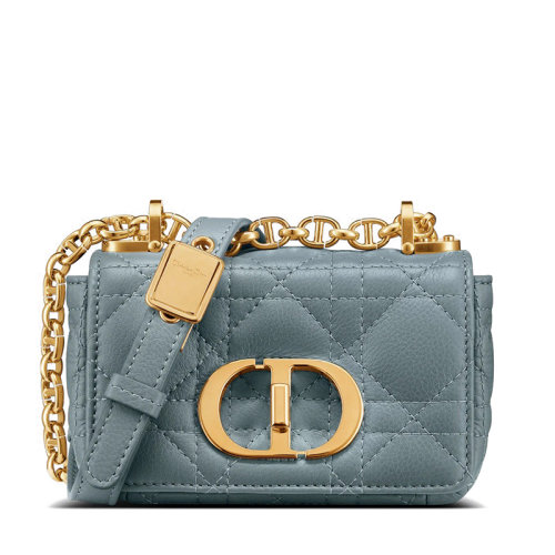 DIOR/迪奥 22春夏新款CARO系列 女士超迷你天蓝色柔软牛皮革藤格纹金扣金链单肩斜挎链条包S2022UWHC_M81B