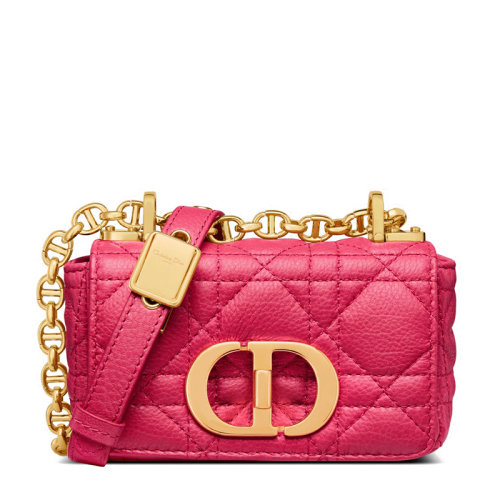 DIOR/迪奥 22春夏新款CARO系列 女士超迷你亮粉色柔软牛皮革藤格纹金扣金链单肩斜挎链条包S2022UWHC_M15F