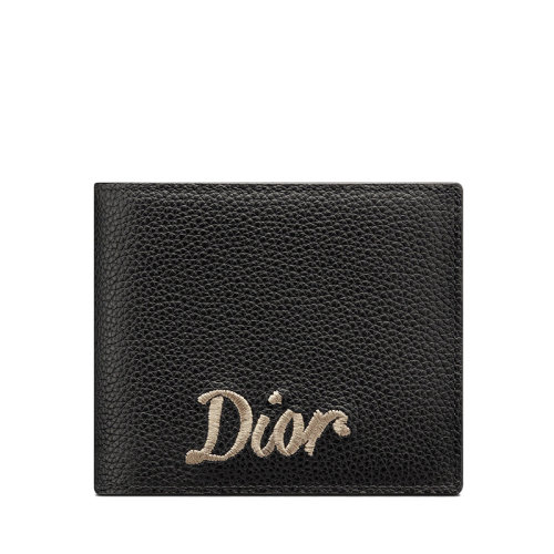 DIOR/迪奥 22新款 男士黑色粒面牛皮革“Dior”丝带状标志双折钱包2ESBH027RIB_H00N