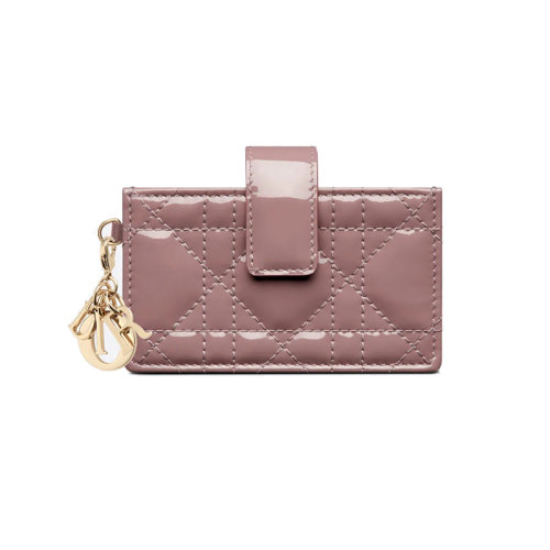 DIOR/迪奥 23新款 LADY系列 女士牡丹粉色漆皮小牛皮拆卸字母吊饰按扣翻盖开合卡包S0074OVRB_M81P