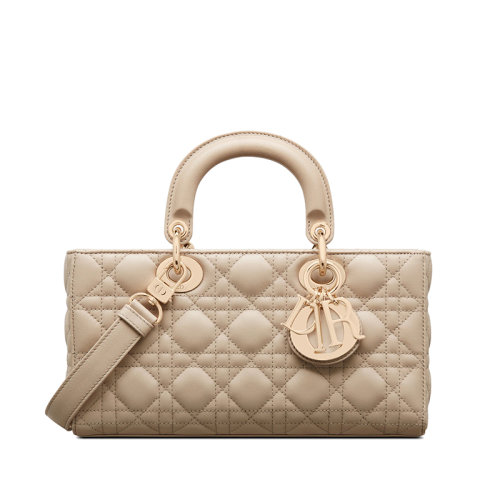 DIOR/迪奥 22春夏新款LADY D-JOY系列 女士自然色藤格纹羊皮革单肩斜挎手提包M0540ONGE_M116