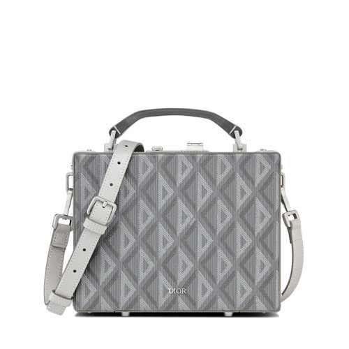 DIOR/迪奥 22春夏新款LOCK系列 男士灰色CD Diamond图案帆布光滑牛皮革箱形单肩斜挎手提包1LXBR163CDP_H42E