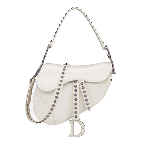 DIOR/迪奥 22新款SADDLE系列 女士奶白色小羊皮饰钉刺绣朋克风磁性 D 形环扣鞍形翻盖手提肩背斜挎包M0455BPPX_M030