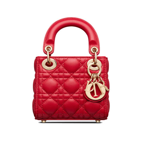 DIOR/迪奥 23新款 LADY系列 女士迷你猩红色小羊皮拆卸复古金色吊饰调节拆卸肩带肩背斜挎手提包S0856ONGE_M57R