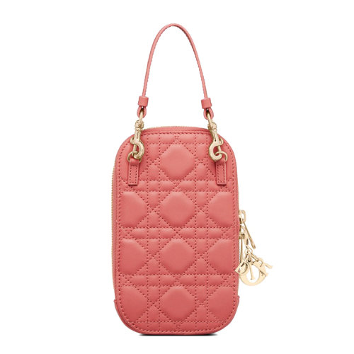 DIOR/迪奥 22新款LADY DIOR系列 女士珊瑚粉色羊皮革藤格纹可卸手柄和链条单肩斜挎包S0872ONMJ_M76P