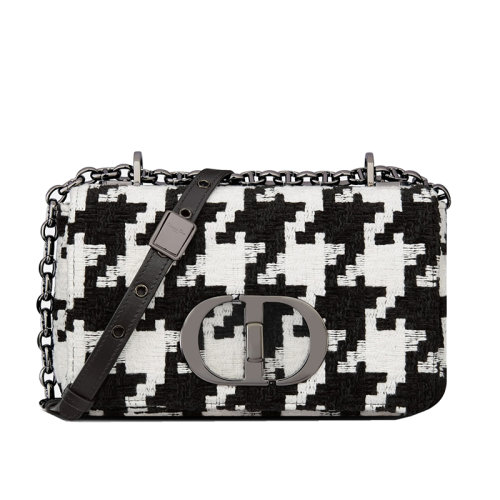 DIOR/迪奥 22新款CARO系列 女士黑/白色千鸟格刺绣图案织物黑色CD扣单肩斜跨手提链条包M9241BTIO_M911