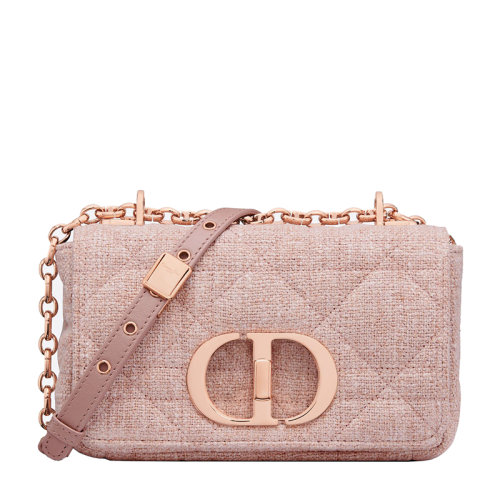 DIOR/迪奥 22新款Caro系列 女士玫瑰粉色亚麻超大藤格纹粉扣粉链单肩斜挎手拿链条包M9241JWEX_M63E