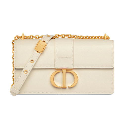 Dior 迪奥 22新款 EAST-WEST系列 女士奶白色色小牛皮翻盖开合背面压印金色饰面调节拆卸链条肩带单肩斜挎包M9334UHEL_M030