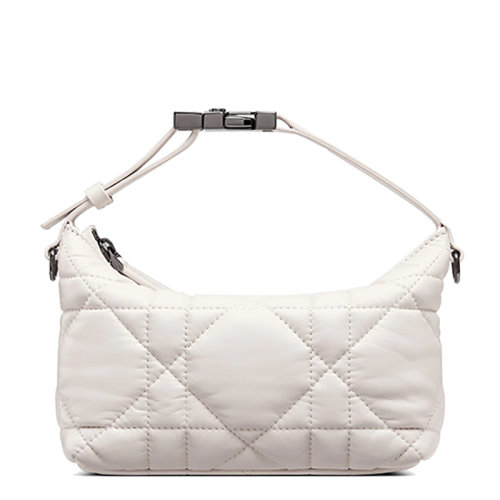 DIOR/迪奥 22春夏新款DIORTRAVEL NOMAD系列 女士小号白色超大藤格纹牛皮革带有CD军用风格的钌饰面金属搭扣拉链开合手提手拿包S5553BMIG_M030
