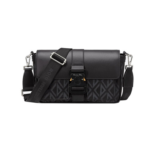 DIOR/迪奥 23新款 男士黑色帆布配皮字母标志铝扣翻盖开合尼龙提花拆卸调节肩带单肩包1ESME157CDP_H43E