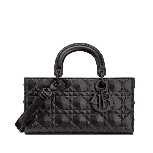 DIOR/迪奥 22春夏新款LADY D-JOY系列 女士黑色钻石形图案藤格纹牛皮革同色调哑光金属吊饰单肩手提包M0540SNEA_M900
