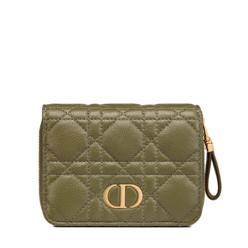 DIOR/迪奥 CARO系列 女士雪松绿色柔软藤格纹小牛皮拉链紧凑型钱包S5032UWHC_M67H