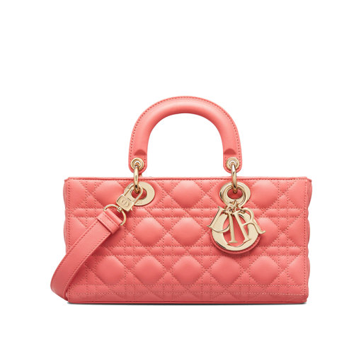 DIOR/迪奥 22新款LADY D-JOY系列 女士珊瑚粉小羊皮藤格纹配金扣单肩斜挎手提戴妃包M0540ONGE_M76P
