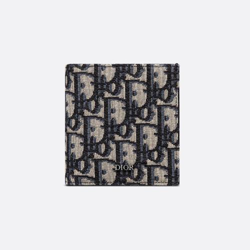DIOR/迪奥 20 男士黑色老花帆布黑色粒面小牛皮徽标拉链开合卡包2ESBC250YSE_H03E
