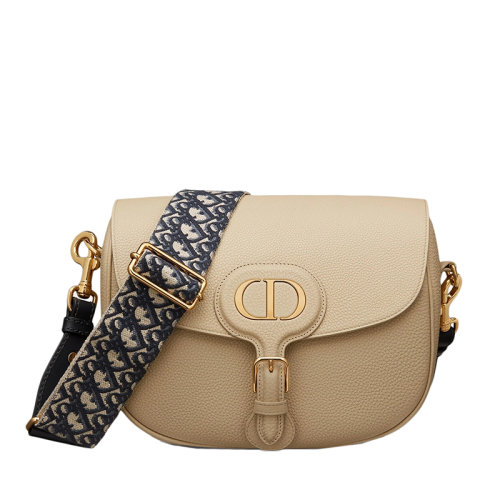 DIOR/迪奥 BOBBY系列 女士大号绳色粒面小牛皮蓝色Oblique刺绣帆布肩带斜挎单肩包M9320UBBY_M925
