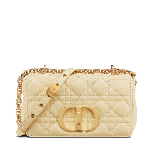 DIOR/迪奥 CARO系列 女士小号淡黄色柔软牛皮革藤格纹CD扣斜挎单肩链条包M9241UWHC_M26Y