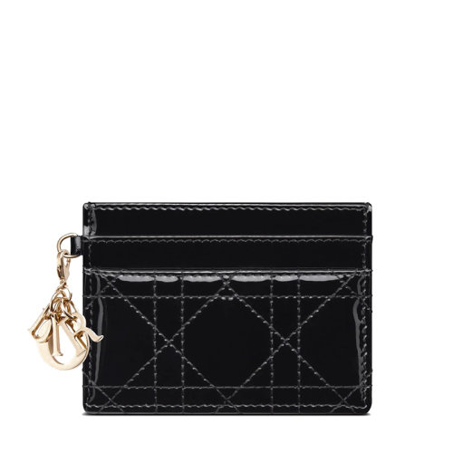 DIOR/迪奥 22新款女士黑色漆皮小牛皮藤格纹缝线饰多个卡位卡包S0974OVRB_M900