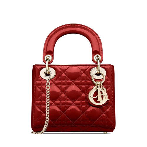 DIOR/迪奥 经典款 Lady Dior系列 迷你三格樱桃红漆面小牛皮单肩手提链条戴妃包 M0505OWCB_M323