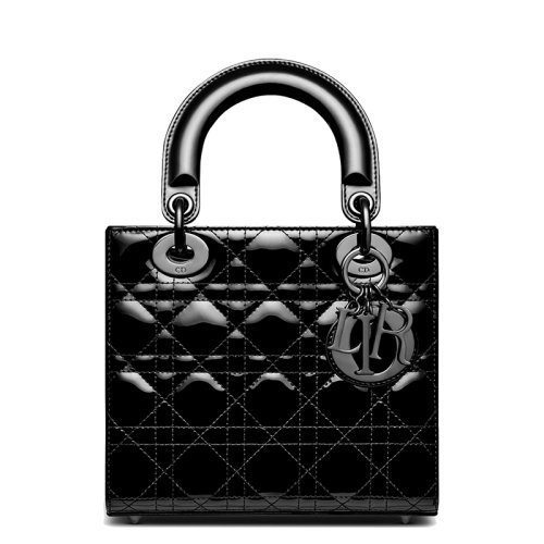 DIOR/迪奥 20 LADY DIOR系列 女士小号黑色亮漆藤格纹小牛皮拉链单肩手提戴妃包M0531NWDD_M900