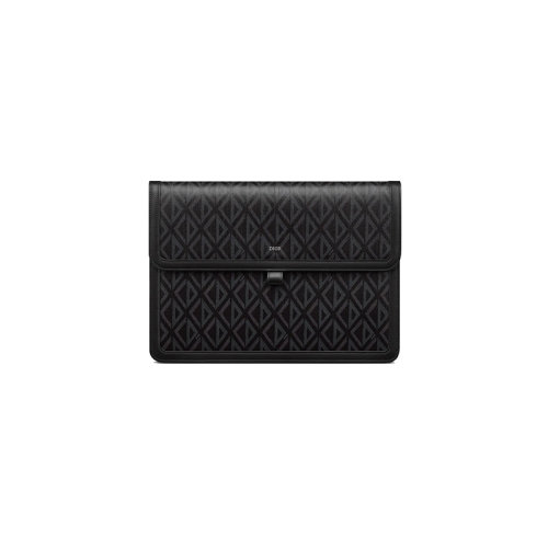 DIOR/迪奥 23新款 HIT THE ROAD系列 男士A4黑色帆布配皮镀钌黄铜字母标志尼龙提花可拆卸腕带磁性翻盖开合手拿包2ESCA437CDP_H43E