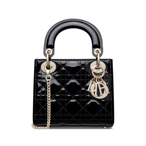 DIOR/迪奥 20 Lad Dior系列 女士黑色漆皮小牛皮戴带链戴妃手提包 M0505OWCB_M900