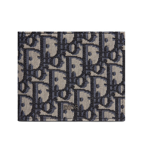 DIOR/迪奥 经典款米色和黑色Dior斜纹提花帆布对折钱包 2OBBH027YSE_H05E