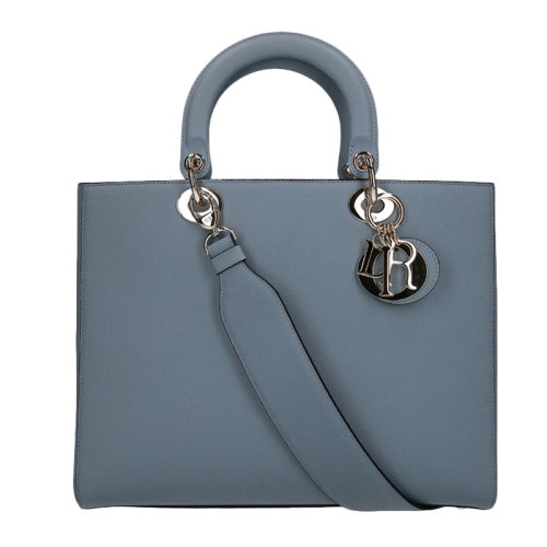 DIOR/迪奥 女士雾霾蓝色牛皮金属吊坠式徽标可拆卸肩带手提包斜挎包单肩包戴妃包女包 M0587OWVG-81B
