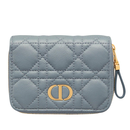 Dior/迪奥 22春夏新款CARO系列 女士云蓝色小牛皮藤格纹缉面线带拉链紧凑型钱包 S5032UWHC_M81B
