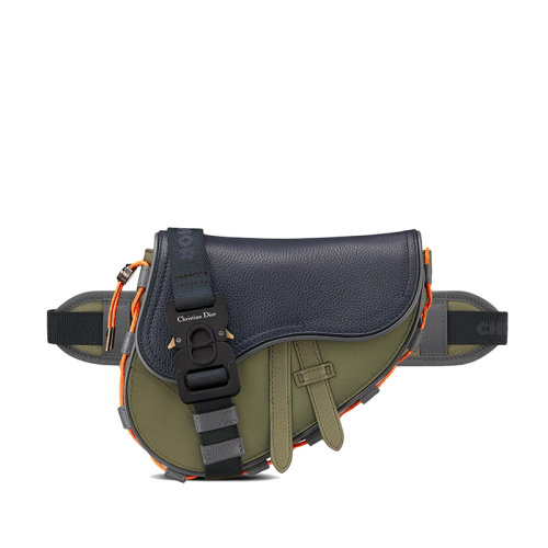DIOR/迪奥 SADDLE系列 SACAI联名男士橄榄色科技面料和海军蓝粒面小牛皮手提肩背包1ADSH198USF_H65E