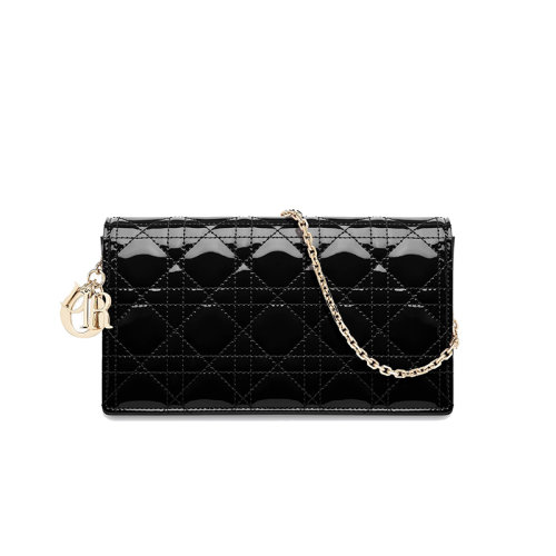 DIOR/迪奥 女士LADY DIOR藤格纹漆皮小牛皮链条手拿包单肩包 S0204OVRB_M900