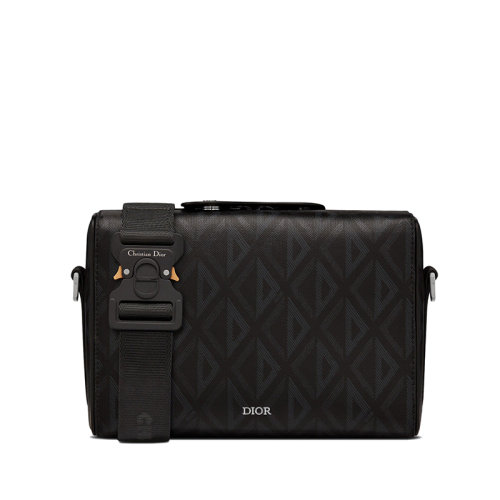 DIOR/迪奥 22春夏新款LINGOT系列 男士黑色CD Diamond图案帆布光滑牛皮革滚边单肩斜挎信使包1ADPO026CDP_H43E