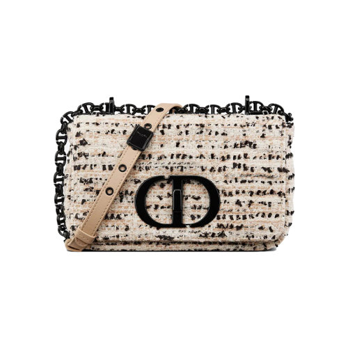 DIOR/迪奥 23新款 CARO系列 女士白色/黑色粗花呢帆布黑色CD字母纽扣翻盖封口调节拆卸链条手拿单肩斜挎包M9241IUTF_M911