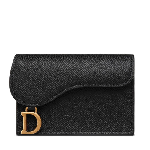DIOR/迪奥 22春夏新款SADDLE系列 女士黑色粒面牛皮革金扣D字吊饰翻盖卡夹钱包S5611CBAA_M900